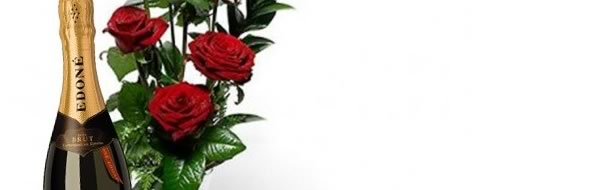 Pack 12 de rosas rojas de calidad extra y botella de cava. Jarrón no incluido.